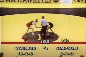 What they were talking about was the epic battle between Brooks Simpson of Iowa and Eric Voelker of Iowa State on Jan. 16, 1988. As the defending NCAA champion, Voelker took to the mat as a huge favorite. He was 19-2 on the season, while Simpson was an untested sophomore with a 3-2 mark.